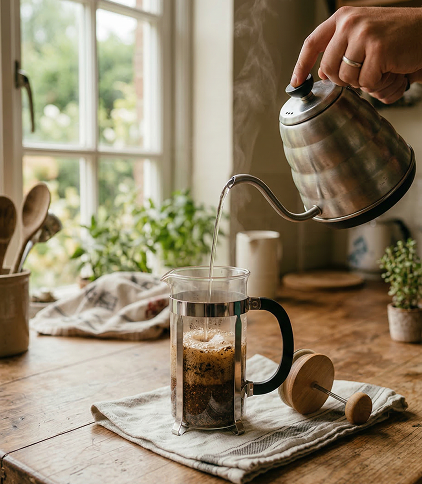 Si quieres sentir realmente el carácter del café —sus aceites naturales, su textura y profundidad— la prensa francesa es uno de los mejores métodos para prepararlo en casa.