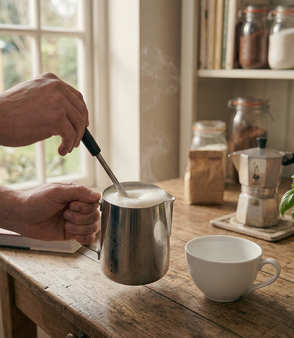 - Si tienes vaporizador: Texturiza hasta obtener una microespuma sedosa.